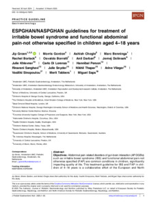 ESPGHAN/NASPGHAN guidelines for treatment of irritable bowel syndrome and functional abdominal pain‐not otherwise specified in children aged 4–18 years.