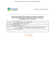 Kirby, Stuart and Phythian, Rebecca (2025) Does Information Communication Technology facilitate or solve crime? Exploring the experience of law enforcement practitioners in three countries. Policing: An International Journal, 48 (5). pp. 1069-1082. ISSN 1363-951X