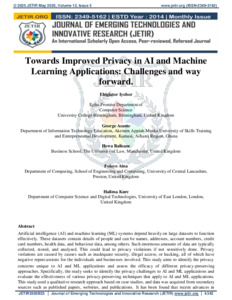 Towards Improved Privacy in AI and Machine Learning Applications: Challenges and way forward.