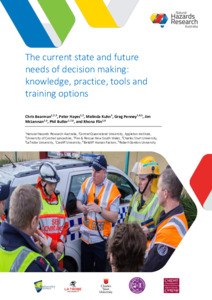 Bearman, Chris, Hayes, Peter, Kuhn, Melinda, Penney, Greg, McLennan, Jim, Butler, Phil and Flin, Rhona (2025) The current state and future needs of decision making: knowledge, practice, tools and training options. Technical Report. Natural Hazards Research Australia.