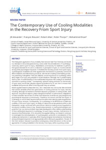 modality in the use of sport injury, its ability to reduce tissue temperature within a safe therapeutic range combined with practitioner decision-making around application timing and modality choice is key. Several advancements in cooling technologies and protocols from our work and others have been developed to offer a better understanding of the multifaceted response to cryotherapy for sport injury recovery. Furthermore, to maximise the effectiveness of its use within the applied setting, our research continues to investigate the individualisation of cryotherapeutic protocols in consideration of the underlying mechanisms to optimally affect the physiological, biomechanical, biochemical and psychological responses most appropriately within elite sport populations. The aim of this short review is however to provide a contemporary critical discussion on the current