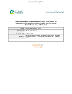 Integrating SMEs market and technology orientation: an exploration of digital technological opportunism, agility, future focus and performance.