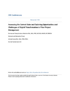 Nkeleme, Emmanuel Ifeanyichukwu orcid iconORCID: 0000-0001-5209-1571, Ehsan, Muhammad Mubashar, Dania, Afolabi and Kantamaneni, Komali orcid iconORCID: 0000-0002-3852-4374 (2025) Assessing the Current State and Exploring Opportunities and Challenges of Digital Transformation in Fiber Project Management. CIB Conferences, 1 . ISSN 3067-4883