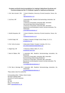 European and North American guidelines for treating Irritable Bowel Syndrome and Functional Abdominal Pain in Childhood: A guide for healthcare professionals.
