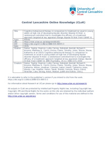 Parker, Sophie, Pearson, Lydia, Carney, Rebekah, Bentall, Richard P., Broome, Matthew R., Cernis, Emma, Clarke, Timothy, Jones, Steven, Moran, Katherine et al (2025) Cognitive behavioural therapy in comparison to treatment as usual in young adults at high risk of developing bipolar disorder (Bipolar At Risk): a randomised controlled trial to investigate the efficacy of a treatment approach targeted at key appraisal change: Bipolar At Risk Trial II (BART II). BMC Psychiatry, 25 (1).