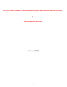 Al-Mazrouei, Maktoom Musallam (2025) The role of Artificial Intelligence in Transforming the Operations of the Abu Dhabi National Oil Company. Diploma thesis, University of Central Lancashire.