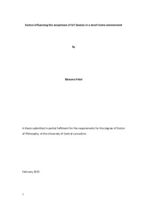 Patel, Rizwana (2025) Factors influencing the acceptance of IoT devices in a smart home environment. Doctoral thesis, University of Central Lancashire.