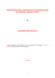Kakoullis, Alexander (2025) INVESTIGATING FAMILY LANGUAGE POLICY STRATEGIES WITHIN MULTILINGUAL FAMILIES IN CYPRUS. Doctoral thesis, University of Central Lancashire.