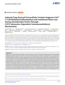 Rojas, Carolina, García, Michelle, González-Osuna, Luis, Campos-Mora, Mauricio, Ponce de León, Enrique, Sierra-Cristancho, Alfredo, Terraza, Claudia, Cortez, Cristian, Sansores-España, Luis Daniel et al (2025) Induced Treg-Derived Extracellular Vesicles Suppress CD4+T-Cell-Mediated Inflammation and Ameliorate Bone Loss During Periodontitis Partly Through CD73/Adenosine Dependent Immunomodulatory Mechanisms. Journal of Extracellular Vesicles, 14 (7). e70118.