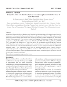 Jaiyeoba-Ojigho, Efe Jennifer, Chris-Ozoko, Lilian Ebele, Amarere, Efemena, Okolie, Ikechukwu Emmanuel and Opiri, Tejiri (2025) Evaluation of the anti-diabetic effects of Commelina diffusa on testicular tissue of male Wistar rats. Journal of Krishna Institute of Medical Sciences University, 14 (1). pp. 40-48. ISSN 2231-4261