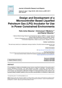 Design and Development of a Microcontroller Based Liquefied Petroleum Gas (LPG) Incubator for Use in Power Constrained Environments.