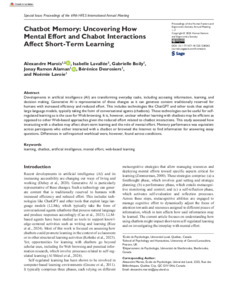 Chatbot Memory: Uncovering How Mental Effort and Chabot Interactions Affect Short-Term Learning.