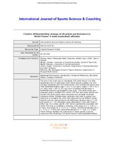Factors differentiating change of direction performance in NCAA power 4 male basketball athletes.