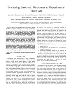 Video is a medium that conveys information capable of reflecting multiple emotions to the viewers. Experimental video, a new contemporary art form, is a complex stimulus that can induce diverse emotions in its audience. This study exposed 22 individuals to two experimental videos, each comprising multiple sequences of experimental images and sounds. We asked participants to record their facial expressions while watching the videos using web cameras. We analysed the recorded footage using DeepFace and Facial Emotion Recognition (FER) algorithms to estimate the seven universal emotions. The Deepface algorithm demonstrated higher sensitivity than FER. We performed time analysis to detect possible visual events that might trigger emotional alterations and Principal Component Analysis (PCA) to search for similarities in participants’ emotional profiles. The sudden voice of a child and the sudden appearance of a human figure, possibly triggered the increase of happiness as the time analysis exposed. PCA revealed high variability in neutral emotion across clusters, with notable increases in anger in two of the three clusters. The first cluster showed the most variability in sadness, while happiness slightly increased only in this cluster.
