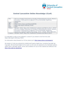 All's Eco‐Friendly That Ends Eco‐Friendly (If Remembered as Such): Memory Processes in Retrospective Judgment of Environmentally Significant Sequences.