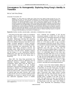 Convergence Vs Homogeneity: Exploring Hong Kong’s Identity in Transition.