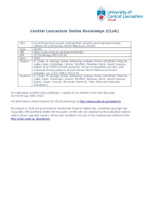 B. Foody, M. George orcid iconORCID: 0000-0002-5482-7332, Dulias, Katharina orcid iconORCID: 0000-0002-3938-6663, Justeau, Pierre, Ditchfield, Peter W. orcid iconORCID: 0000-0002-3081-6591, Ladle, Lilian orcid iconORCID: 0000-0001-7072-1151, Gretzinger, Joscha orcid iconORCID: 0009-0004-0022-6082, Schiffels, Stephan orcid iconORCID: 0000-0002-1017-9150, Reich, David, Kenyon, Robert et al (2025) Ancient genomes reveal cosmopolitan ancestry and maternal kinship patterns at post-Roman Worth Matravers, Dorset. Antiquity . ISSN 0003-598X