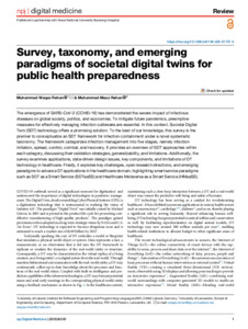 Rehan, Muhammad Waqas orcid iconORCID: 0000-0002-2769-8424 and Rehan, Muhammad Maaz (2025) Survey, taxonomy, and emerging paradigms of societal digital twins for public health preparednes. npj Digital Medicine, 8 (1). p. 520.