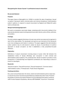 Definitions of sexual misconduct involving abuse of power often fall between the established remits of “sexual offending” and “corruption” in both criminal and administrative justice systems. The combined term “sexual corruption” provides a novel perspective in understanding how English/UK professions are responding to abuse of power for sexual gain.