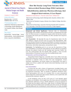 Chakraborty, Debabrata, Vaze, Poonam Guha and Das, Abhijit (2025) Slow But Steady: Long-Term Outcome After Intracerebral Haemorrhage With Continuous Rehabilitation, Judicious Pharmacotherapy, And Surgical Interventions, A Case Report. Journal of Clinical Case Reports, Medical Images and Health Sciences (JCRMHS), 11 (5). ISSN 2852-1286