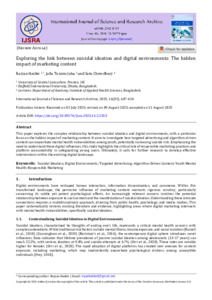 Haider, Raiyan, Juba, Jafia Tasnim and Chowdhury, Satu (2025) Exploring the link between suicidal ideation and digital environments: The hidden impact of marketing content. International Journal of Science and Research Archive, 16 (02). pp. 607-614. ISSN 25828185