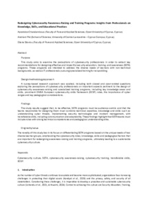 Redesigning cybersecurity awareness-raising and training programs: insights from professionals on knowledge, skills and educational practices.