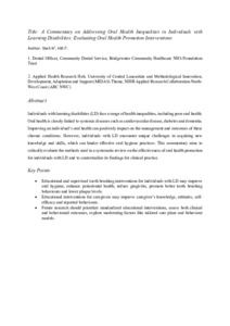 A Commentary on Addressing Oral Health Inequalities in Individuals with Learning Disabilities: Evaluating Oral Health Promotion Interventions.