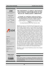 Maulidi, Ach, Rizal, Ach. Syaiful, Ali Alnajar, Ali Elazumi, Hastuti, Maria Eugenia and Ben Galboun, Abdalmenam Ramadan (2025) The Whispering Guardian: Religiosity and Internal Whistleblowing in the Realm of ‘Normalized’ Corruption. Jurnal Aplikasi Manajemen, 23 (2). pp. 460-477. ISSN 1693-5241