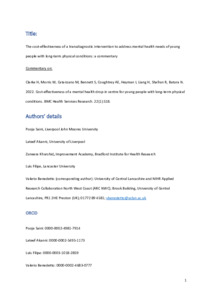 The cost-effectiveness of a transdiagnostic intervention to address mental health needs of young people with long-term physical conditions: a commentary.