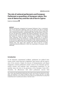 The role of national parliaments and European Parliament as guardians of European values: The case of democracy and the rule of law in Cyprus.