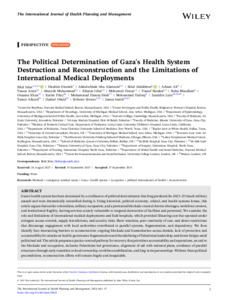 The Political Determination of Gaza's Health System Destruction and Reconstruction and the Limitations of International Medical Deployments.