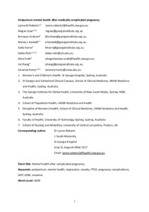 Pregnancy complications like HDP, GDM, and anaemia may increase the risk of postpartum mental disorders, especially depression, however the evidence for anxiety and PTSD is limited. Women with medical complications in pregnancy should be considered at high risk for mental disorders and receive appropriate and timely screening and follow-up.
