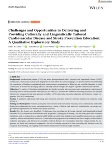Challenges and Opportunities in Delivering and Providing Culturally and Linguistically Tailored Cardiovascular Disease and Stroke Prevention Education: A Qualitative Exploratory Study.