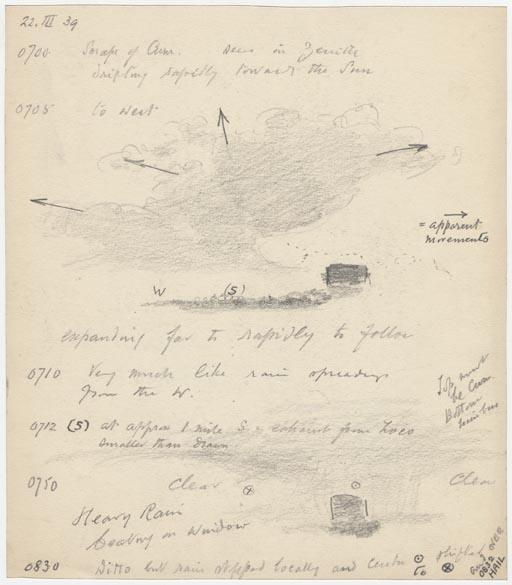 Gibbs, George James (1939) Notes and sketches of observations of weather 22nd March 1939 07:00 - 08:32. [Image] (Unpublished)