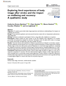 Exploring lived experiences of body image after stroke and the impact on wellbeing and recovery: A qualitative study.