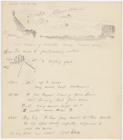 Gibbs, George James (1939) Masses of Cumulus rising toward wires. [Image] (Unpublished)
