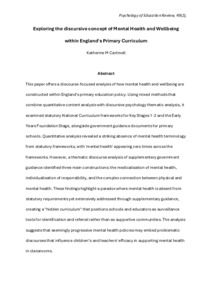 Exploring the discursive concept of Mental Health and Wellbeing within England's Primary Curriculum.
