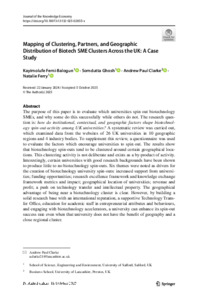 Mapping of Clustering, Partners, and Geographic Distribution of Biotech SME Clusters Across the UK: A Case Study.
