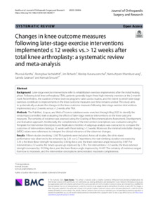 Changes in knee outcome measures following later-stage exercise interventions implemented ≤12 weeks vs. >12 weeks after total knee arthroplasty: A systematic review and meta-analysis.