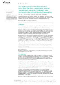 Lloyd, Aimee, Elbalawi, Mahmoud, Kurc, Miguel, Hussain, Mariam and Abugreen, Salwa (2025) The Implementation of Faricimab in East Lancashire NHS Trust: Highlighting the Real-World Efficacy and Safety in Patients With Neovascular Age-Related Macular Degeneration. Cureus: Journal of Medical Science, 17 (9). e93478.