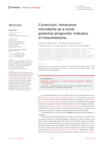 Pentimalli, Francesca, Krstic-Demonacos, Marija, Costa, Caterina, Mutti, Luciano and Bakker, Emyr orcid iconORCID: 0000-0002-0091-1029 (2025) Correction: Intratumor microbiota as a novel potential prognostic indicator in mesothelioma. Frontiers Media.