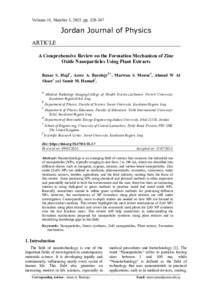 Haji, Banaz, Barzinjy, Azeez, Mousa, Marwan, Al Shaer, Ahmad Wael orcid iconORCID: 0000-0002-5031-8493 and Hamad, Samir (2025) Investigating the Formation Mechanism of ZnO Nanoparticles using Plant Extracts: A Review. Jordan Journal of Physics .