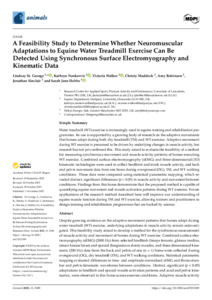 A feasibility study to determine whether neuromuscular adaptations to equine water treadmill exercise can be detected using synchronous surface electromyography and kinematic data.