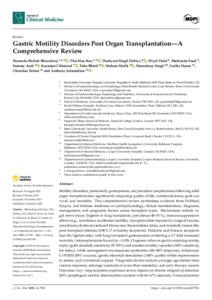 Bharadwaj, Hareesha Rishab, Koo, Thai Hau, Dahiya, Dushyant Singh, Dalal, Priyal, Fuad, Muhtasim, Arab, Sammy, Chhatwal, Karanjot, Bhatti, Taha, Malik, Maham et al (2025) Gastric Motility Disorders Post Organ Transplantation—A Comprehensive Review. Journal of Clinical Medicine, 14 (21). p. 7581.