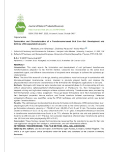 Khan, Iftikhar, Houacine, Chahinez and Shahreza, Mandana Javeri (2025) Formulation and Characterization of a Transfersome-based Oral Care Gel: Development and Delivery of Encapsulated Lidocaine. Journal of Natural Products Discovery, 4 (2). ISSN 2755-1997