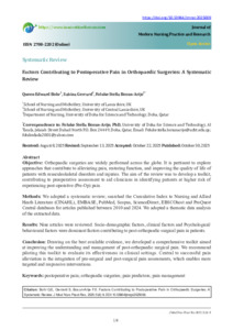 Bohr, Queen Edward, Gerrard, Sabina orcid iconORCID: 0000-0002-2984-8748 and Bosun-Arije, Foluke Stella (2025) Factors Contributing to Postoperative Pain in Orthopaedic Surgeries: A Systematic Review. Journal of Modern Nursing Practice and Research, 5 (4). p. 9.
