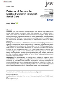 Summary: This study examined national trends in how children with disabilities and mental health concerns are treated within children's social care in England. Using a 100% sample of data from the Annual Children in Need Census (2015–2023), obtained through Freedom of Information requests, the analysis was guided by an evidence-based policy framework. The focus was on assessments, child protection investigations, and the categorization of children's primary needs to understand how practice has shifted over time. Findings: The results show a 77.1% increase in assessments identifying concerns about disability or mental health, which now account for a quarter of all assessments. Section 47 child protection investigations for these children rose by 145.2%, compared with a 45.4% increase for other children. Meanwhile, the proportion recorded with “disability or illness” as their primary need fell by 17.4%. These findings indicate a declining focus on addressing the specific needs of disabled children and a rising emphasis on risk. This pattern reflects concerns raised by parent-led groups and prior research that families are often viewed with suspicion, leading to “parent blame” and intrusive interventions rather than supportive services. Applications: The study highlights the need for policy and practice change to ensure disabled children receive appropriate support. Recommended actions include separating assessment of need from child protection investigations, requiring practitioners to develop disability expertise, creating a national strategy to reduce over-reliance on investigative approaches, and properly funding child-in-need services. These steps would help re-balance the system toward meeting needs rather than blaming parents.