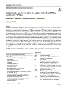 Deciphering the genetic diversity in the Arabian Peninsula and Africa: insights from Y-STR data.