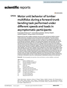 Motor unit behavior of lumbar multifidus during a forward trunk bending task performed under different speeds and loads in asymptomatic participants.