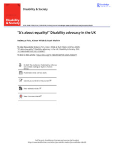 Advocacy means taking action to support people to secure their rights, pursue their interests, and obtain services they need. This study aimed to find out people’s knowledge and experiences of advocacy, as well as their recommendations for the improvement of advocacy services. Forty-six people from various regions of the UK were interviewed online, and 193 people completed a survey. Participants had different impairments, and some were family members of disabled people, most of whom experienced impairment and disability themselves. People said that they would like more access to advocacy services to support them with many areas of their lives, such as to reduce isolation, accessing employment and healthcare, support with benefits and help with documentation, financial support and advice, and to challenge inaccessibility and discrimination. There is a need for improved general statutory advocacy that involves disabled people as advocates, along with greater awareness of what is offered.